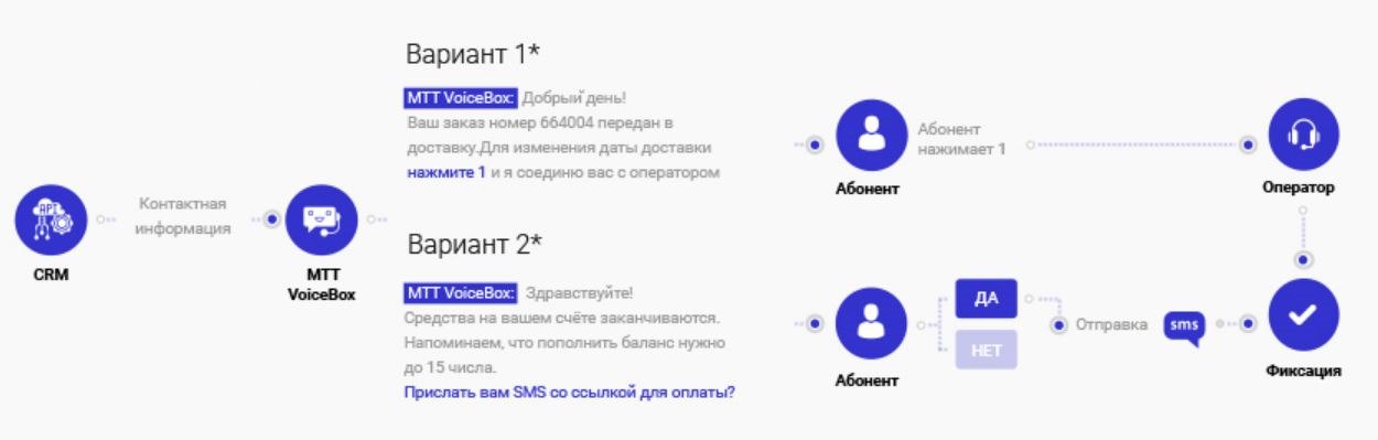 В информирующих инструментах МТТ, кроме голосовой рассылки, есть и другие услуги на базе телекоммуникационных технологий. У нас представлены решения для исходящих звонков по API. В них доступны детальные настройки с доступом к информации в любой момент, в режиме реального времени.