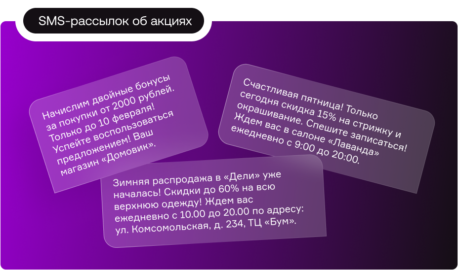 Примеры шаблонов SMS для акций: